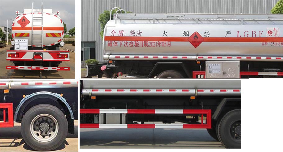 | 配置 | 1、該車適用于危險(xiǎn)品運(yùn)輸,運(yùn)送危險(xiǎn)貨物車輛類型為:FL型,類項(xiàng)號:3。罐體有效容積:14.9立方米,運(yùn)輸介質(zhì):汽油,密度:700千克/立方米,罐體外形尺寸(長×寬×高)(mm):5700×2200×1450。罐體上部選裝上走道;選裝后部尾燈架樣式;選裝弧形擋泥板。選裝左側(cè)無工具箱。2、側(cè),后防護(hù)材料均為Q235,螺栓連接;后防護(hù)截面尺寸120×60mm,下邊緣離地高500mm。3、僅采用軸距(mm):4700。后軸采用空氣懸架。隨底盤選裝駕駛室前面罩,選裝側(cè)窗玻璃;駕駛室頂部中間三個(gè)裝飾燈為選裝件;前霧燈為選裝件;駕駛室前臉擾流罩為選裝件。僅選用排氣管前置、限速裝置(限速80km/h)、前輪盤式制動及子午線輪胎的底盤;安裝帶有衛(wèi)星定位功能的行駛記錄儀;ABS型號/生產(chǎn)廠家:3631010-C2000/東科克諾爾商用車制動系統(tǒng)(十堰)有限公司。發(fā)動機(jī)B6.2NS6B210油耗值為26.5 L/100Km。 該車后軸為采用空氣懸架. | ||