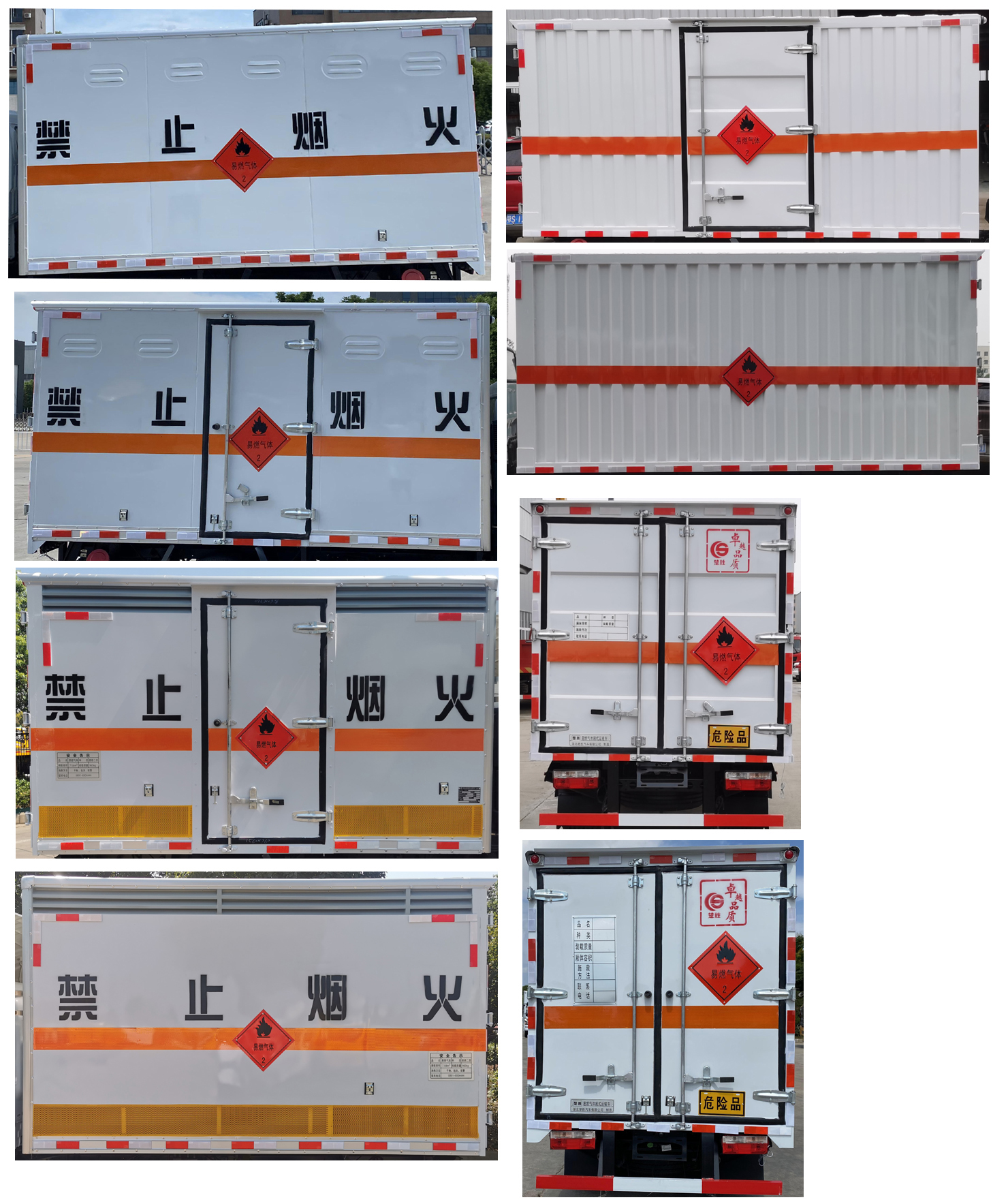 配置  ABS型號:ABS/ASR-12V-4S/4M;ABS生產企業:襄陽東風隆誠機械有限責任公司;安裝有限速裝置;限速裝置限速(km/h):80;安裝有具有衛星定位功能的行駛記錄儀;選裝描述:該車型可選裝ETC車載裝置.選裝后視鏡.廂體側面及后面板選裝平面板結構、瓦楞板結構;選裝百葉窗;發動機/油耗值(L/100km)對應關系為:Q23-95E60/11.3;側后防護情況:側、后防護材料均為Q235,側防護螺栓連接;后防護焊接,截面尺寸100×50mm,下邊緣離地高380mm;車廂頂部封閉且不可開啟;運輸**容器(瓶)包裝的貨物;危險貨物類項號:2.1,2.2;其他說明:該車為危險貨物運輸車.僅選用排氣管前置,限速裝置,前輪盤式制動及子午線輪胎的底盤.轉向輪安裝輪胎爆胎應急防護裝置;外形尺寸長/軸距對應關系(mm):5900/3200,5500/2800;