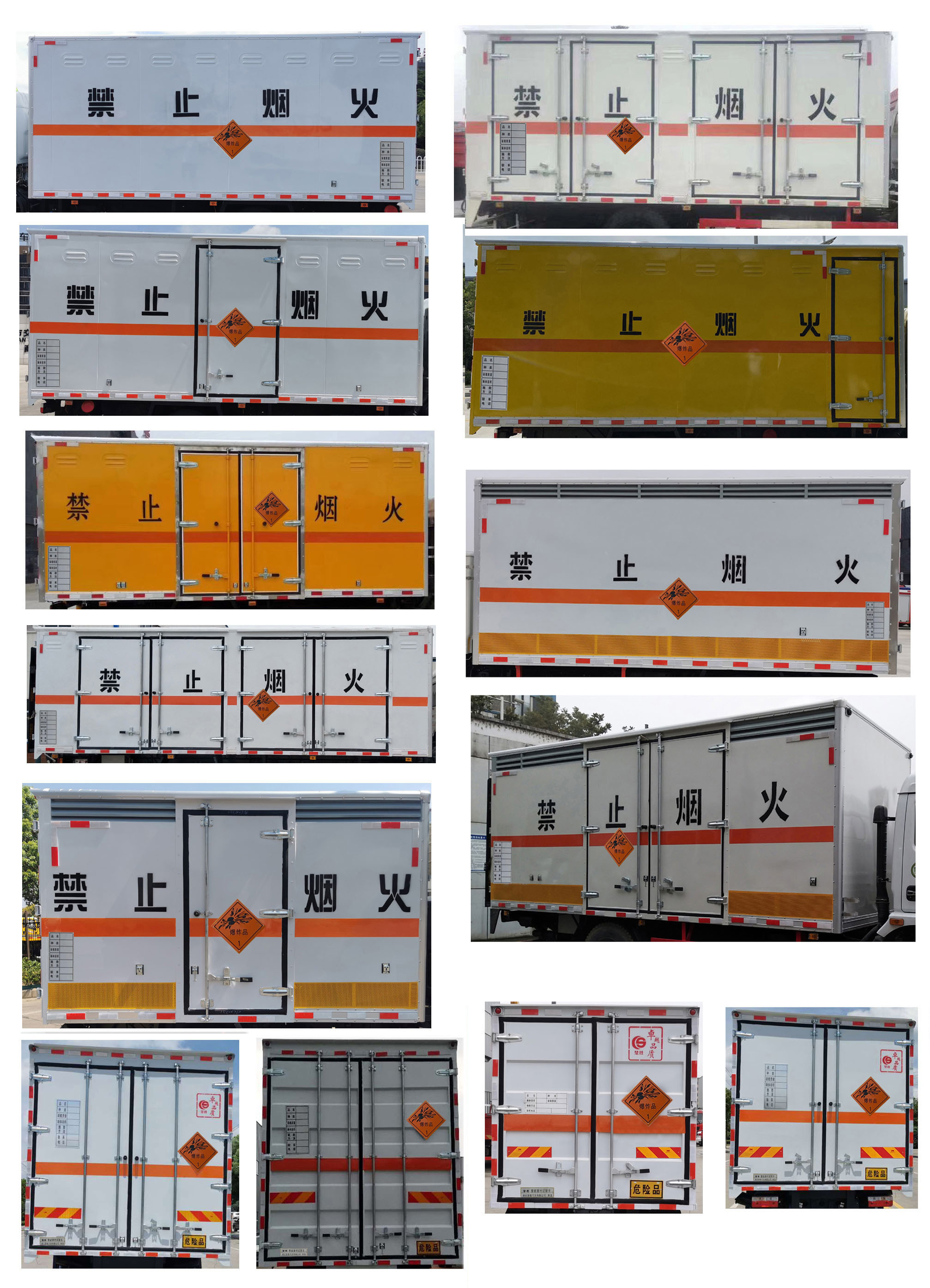| 配置 | 1、該車適用于運輸危險品。運輸具有**容器(瓶)包裝的物品,EX/Ⅲ型車輛,危險貨物類項號:1.1B,1.1G,1.3C,1.1D,1.2D,1.3C,1.1C,1.4G。廂體頂部封閉不可開啟。2、側/后防護材料為Q235,側防護螺栓連接,后防護焊接,截面尺寸(mm)120×50,下邊緣離地高490mm。3、隨底盤選裝駕駛室前面罩,選裝側窗玻璃;駕駛室頂部中間三個裝飾燈為選裝件;前霧燈為選裝件;駕駛室前臉擾流罩為選裝件。僅選用排氣管前置、限速裝置(限速80km/h)、前輪盤式制動及子午線輪胎的底盤;轉向輪安裝輪胎爆胎應急防護裝置。后軸采用空氣懸架。安裝帶有衛(wèi)星定位功能的行駛記錄儀,EBS型號/生產廠家:EBS3/威伯科(上海)管理有限公司。發(fā)動機與油耗值(L/100Km)對應關系為: B6.2NS6B210/26.5,DDi50E190-60/23.9。整車外形長/軸距/前懸/后懸的對應關系為(mm):8650/4700/1430/2520,9050/5000/1430/2620,9250/5000/1430/2820,10000/5800/1430/2770。4、該車型可選裝ETC車載裝置。廂體側面選裝開門型式及位置,選裝不帶側開門,選裝瓦楞板結構;廂體側面板選裝開百葉窗。 | ||