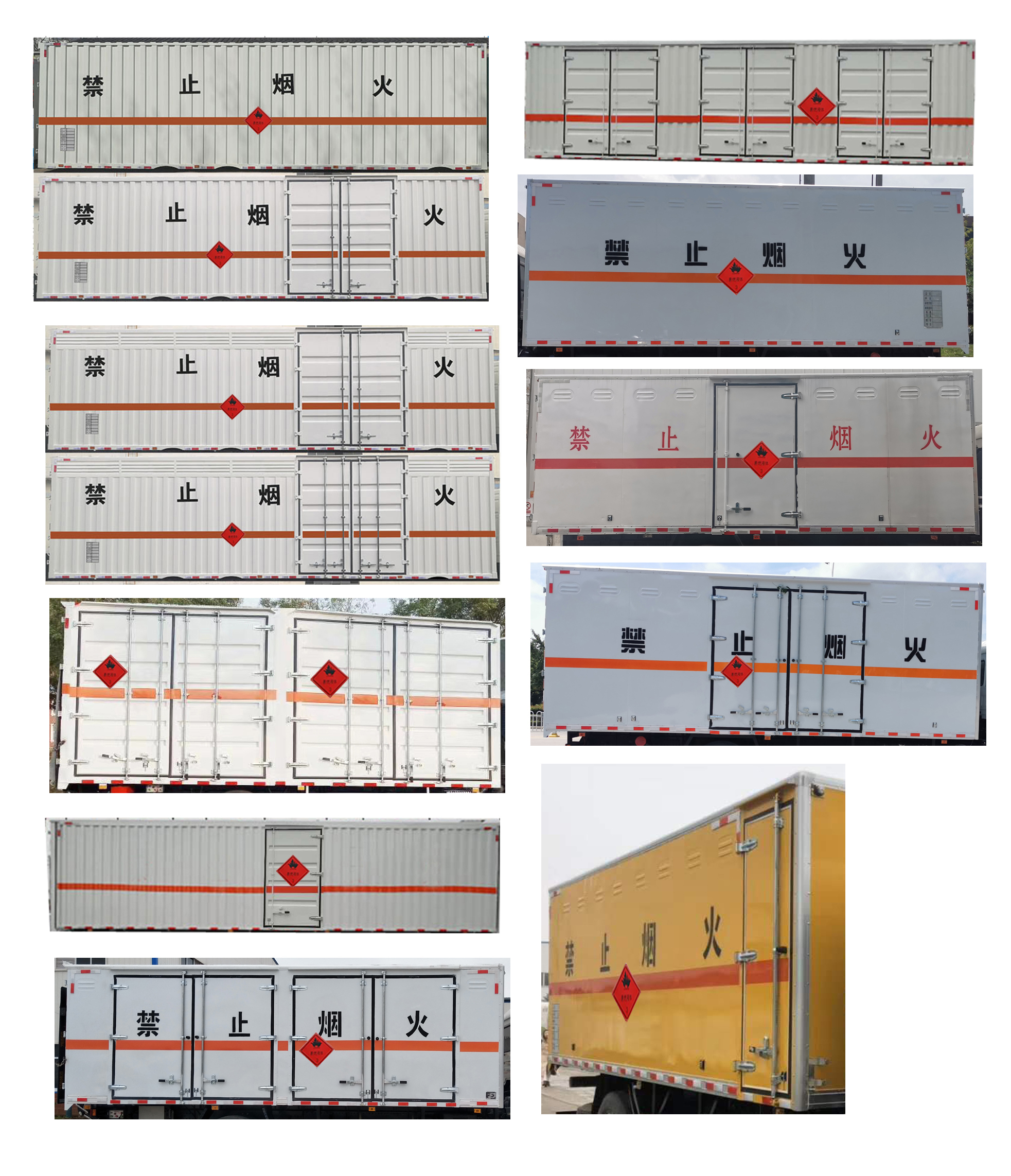 廂體配置:嚴格按照公告尺寸制作。外板采用優質冷軋鋼板帶百葉窗,內飾為導電性能良好的鋁平板有透氣孔,矩形骨架結構內部填充防潮阻燃擠朔板,復合加鉚合工藝。廂體四周鋁合金包邊及包角,車廂底板鋪設防靜電膠皮,廂體前臉50公分高鋪設防靜電膠皮。后部設置對開門,可選裝側門位置,廂體內部兩側安裝捆綁貨物的臥環。廂體內部安裝氣體器及感應防器及防盜報警器。車廂一周粘貼橙色放光帶,箱體粘貼 菱形告示牌,安全告示牌,危險品牌,箱體安裝示廓燈(前白后紅),拖地靜電帶。