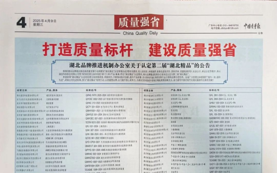 “湖北精品”由湖北省市場監管局、省經信廳等多部門聯合推動,是全省制造業領域的“優中選優”工程代表湖北產業技術最高水平和質量最強口碑。評選需通過材料初審、現場核查、專家評審、社會公示、動態監管五大環節,對標國際先進標準,聚焦“技術領先、質量卓越、品牌高端、效益突出”四大維度,堪稱湖北制造的“金字招牌”。