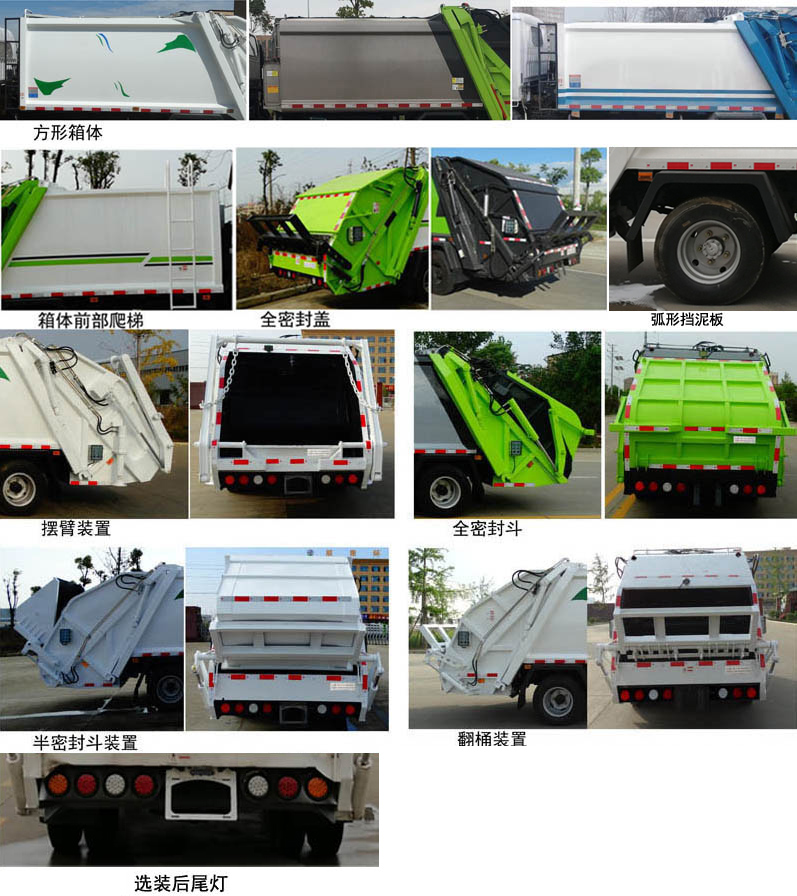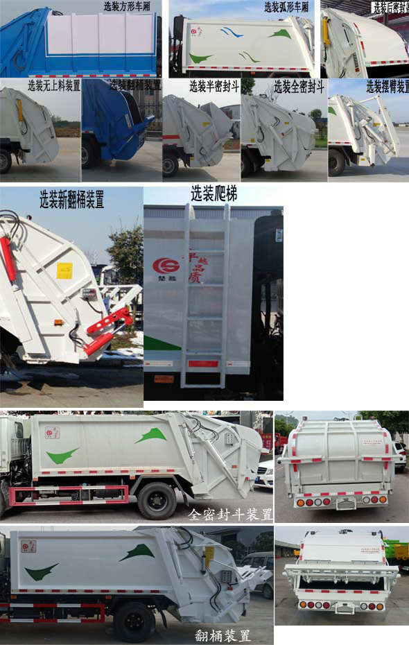 | 配置 | 1、該車主要專用裝置由箱體、壓縮系統(tǒng)組成,用于垃圾的收集與清運(yùn)。該車可選裝方形或弧形箱體,選裝全密封蓋裝置,選裝方形擋泥板,選裝箱體前部爬梯,選裝后部工作裝置。選裝工作裝置時(shí),外形長(mm)/后伸(mm)/整備質(zhì)量(kg)對應(yīng)關(guān)系:①無上料裝置: 6525/-/5530;②擺臂裝置: 6685/160/5850;③全密封斗裝置:6725/200/5850;④翻桶裝置,半密封斗裝置:6925/400/5850。2、側(cè)防護(hù)采用冷彎型鋼/Q235,螺栓連接;后防護(hù)由專用裝置替代,下邊緣離地高500mm。3、ABS系統(tǒng)型號(hào):VIE ABS-II,ABS系統(tǒng)生產(chǎn)廠家:浙江萬安科技股份有限公司。發(fā)動(dòng)機(jī)JX4D30D6H的油耗值為13.9 L/100km。隨底盤選裝左右車門上方黑色貼膜可選擇取消。選裝輪輞外觀。選裝前臉、前部燈具。該車型可選裝ETC車載裝置. | ||