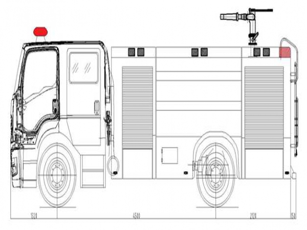 總體布置 | 整車由消防員乘員室和車身兩大部分組成,車身布置采用三分體式結構,前部為器材箱,中部為水罐,后部為水泵房,罐體為平行六面體廂式容罐。 |